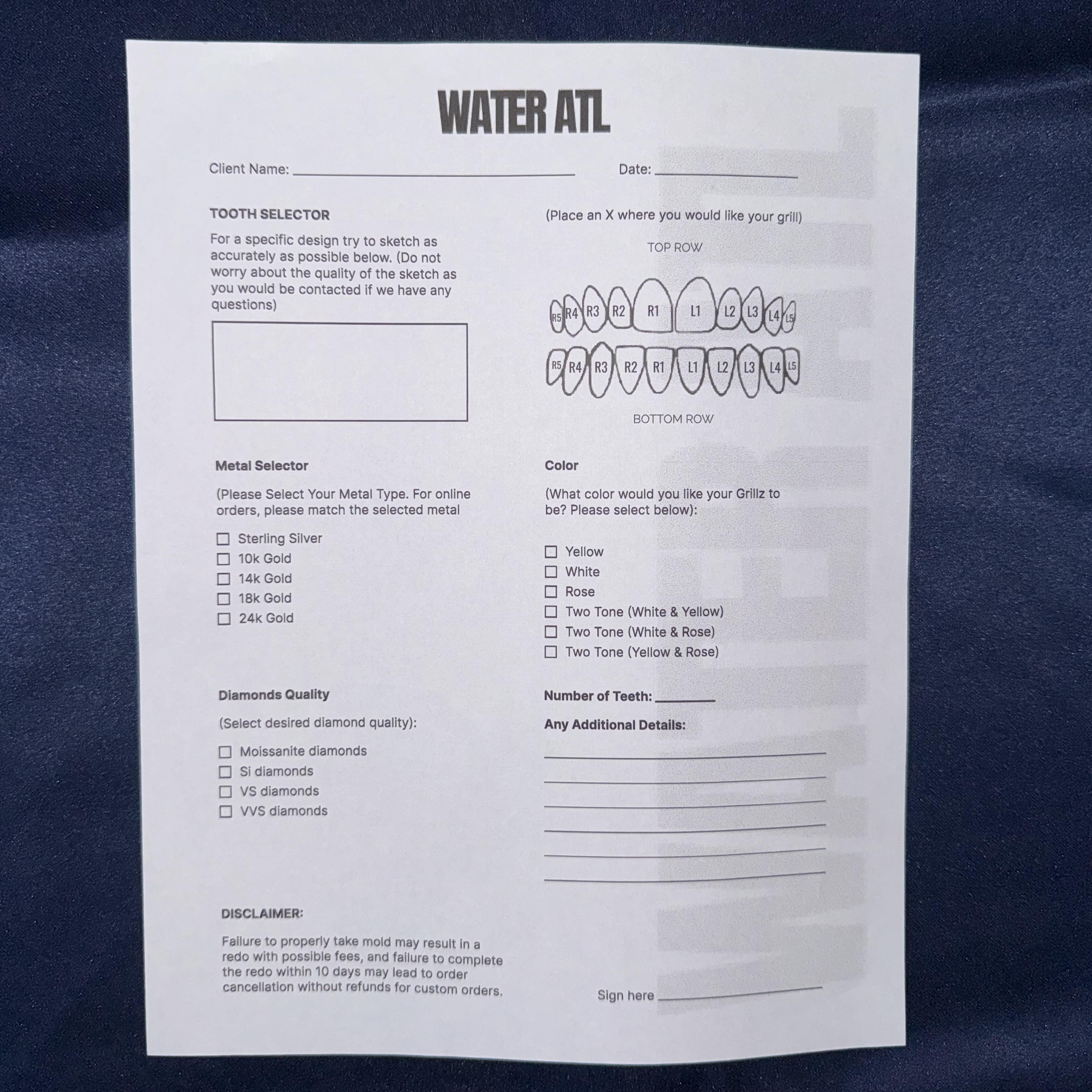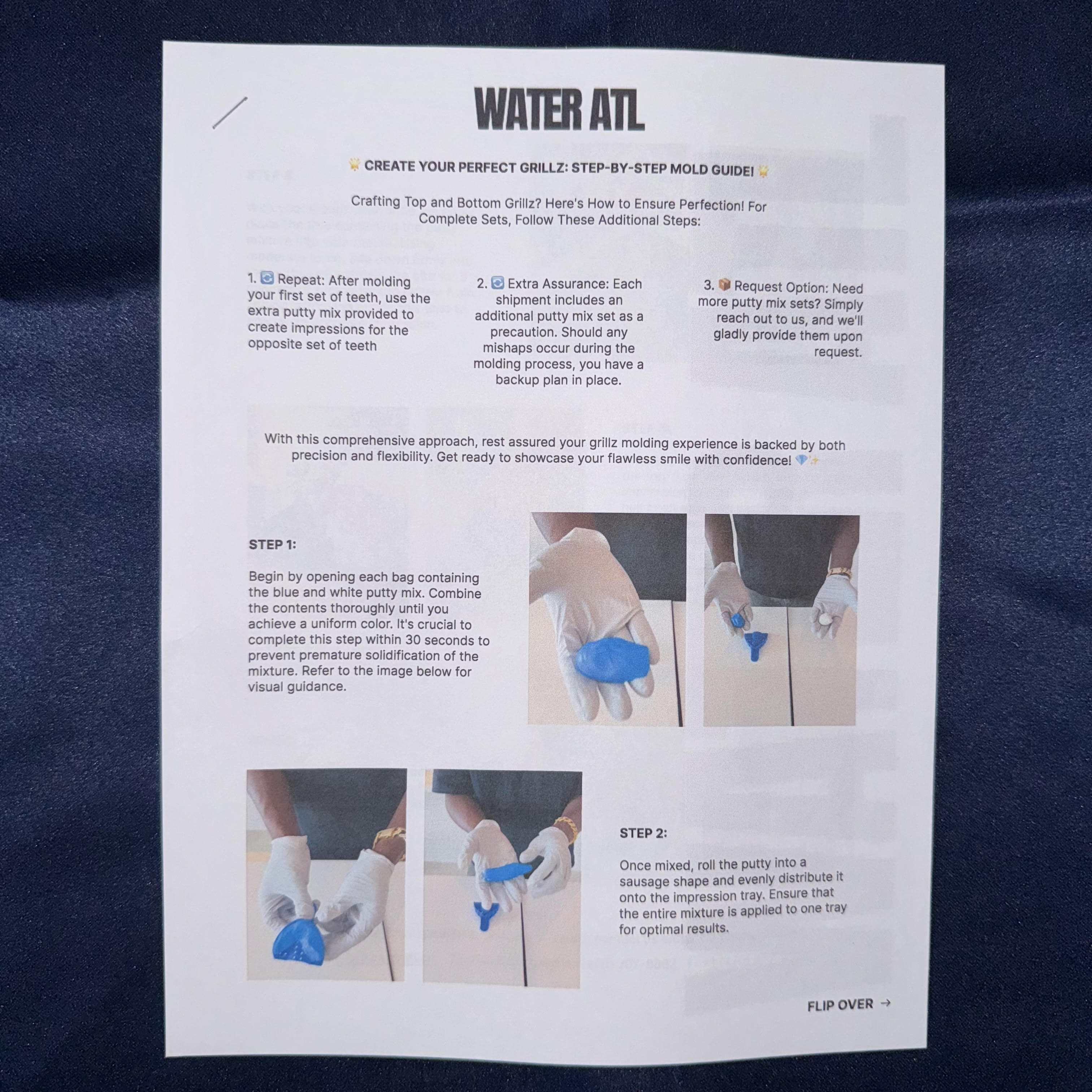 Upon placing your order, we'll ship you a molding kit with easy-to-follow instructions. Simply mold the kit to your teeth, send it back to us, and our expert craftsmen will create custom grillz tailored to your unique dental impression.