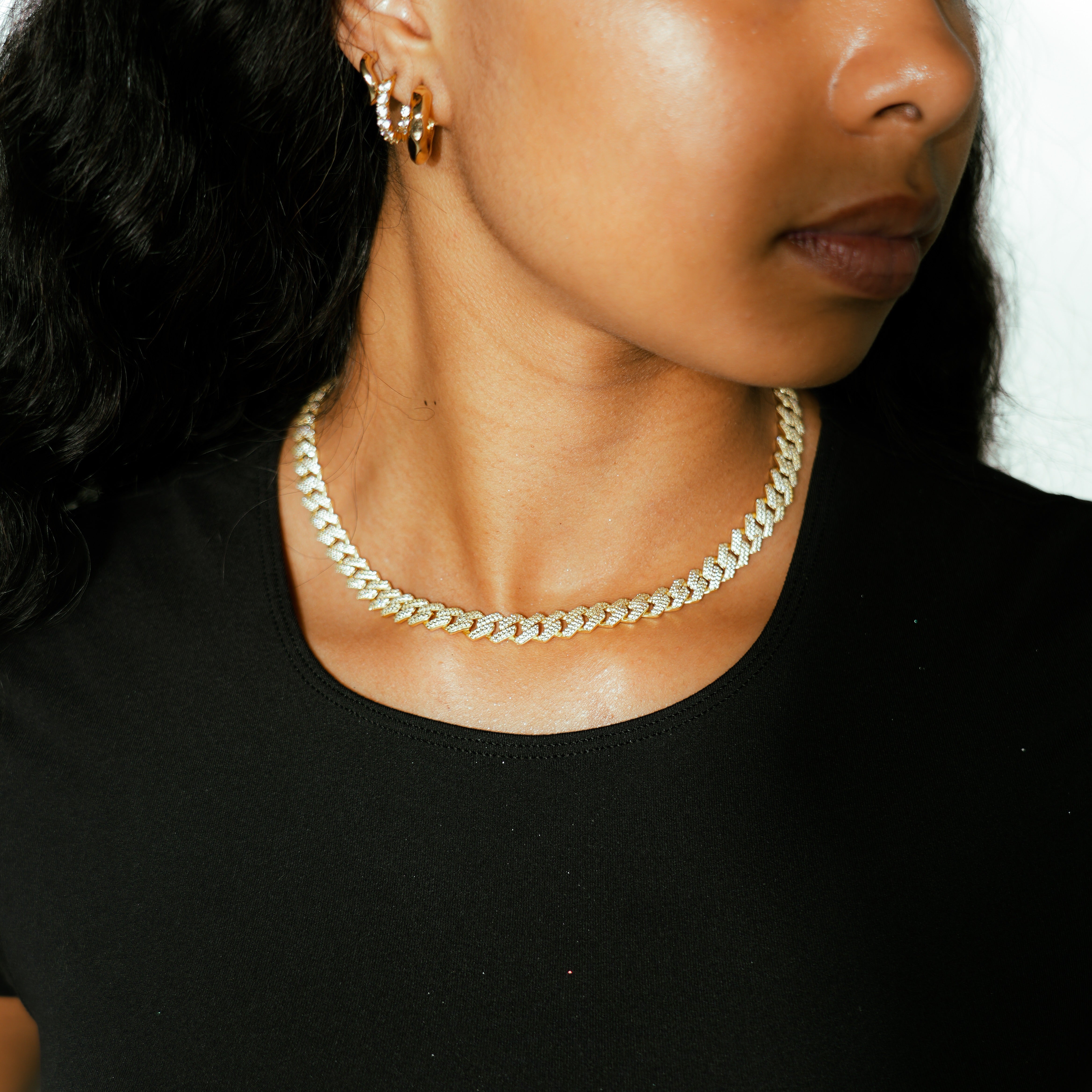 💧 Crafted with premium 925 sterling silver and double-dipped in genuine 14K Gold for maximum shine and durability. Iced out with ultra-clear VVS diamond simulants that hit just like the real thing.